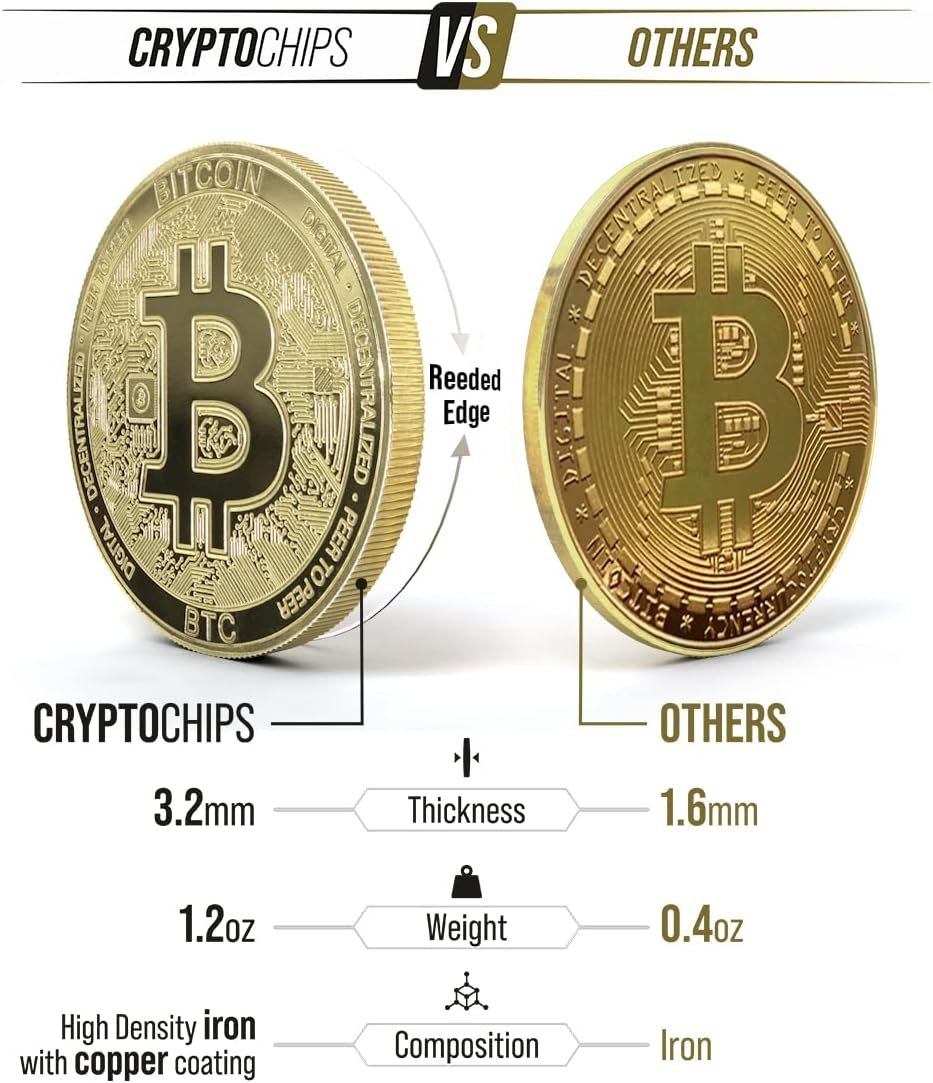 Shining Bright – Each coin is coated with a thin copper layer before applying our custom PVD treatment to give each Cryptochip a nice and shiny finish.