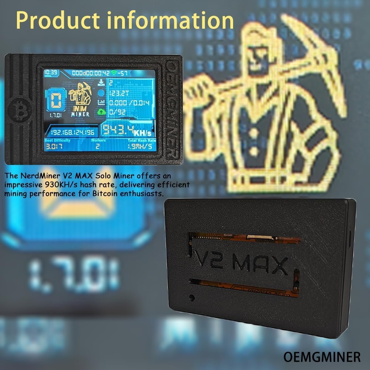 NerdMiner V2 MAX Solo Bitcoin Miner – 930KH/s Hash Rate, 1.5W Power, 3.125 BTC Win3, Compact 2.4G WiFi & Wired Connection, High-Efficiency Cryptocurrency Miner for Bitcoin Enthusiasts