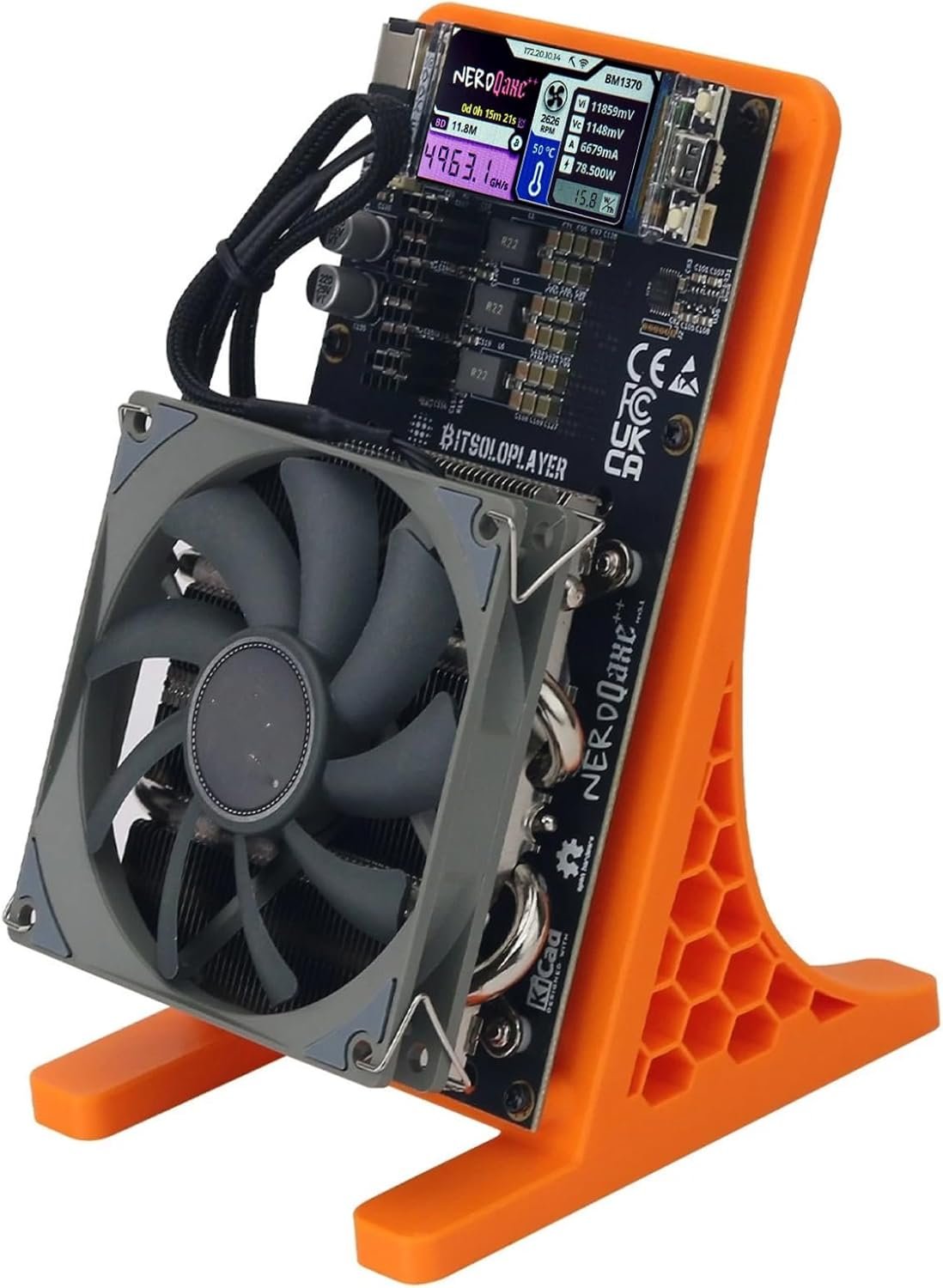 Take your home Bitcoin mining to the next level with the NerdQAxe++ 4.8T, a compact yet powerful ASIC miner designed for efficiency and long-term performance. Delivering a solid 4.8 TH/s hash rate, this unit is ideal for smaller-scale mining setups. It comes fully equipped with a reliable Power Supply Unit (PSU) and a sturdy metal stand, offering a plug-and-play experience with minimal setup hassle.
