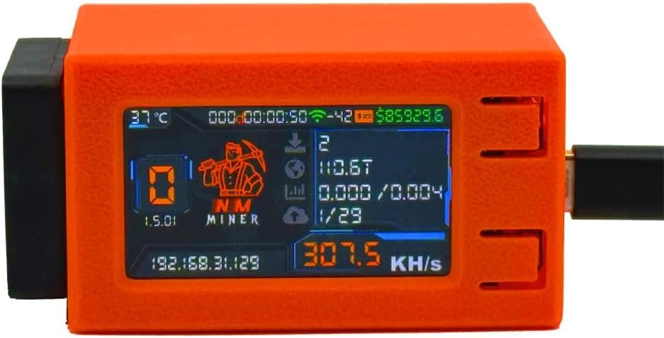 Features a 1.9-inch full-color TFT display for real-time mining monitoring. A built-in fan ensures optimal cooling and durability, while its compact design makes it ideal for desktop use with an aesthetic appeal, the NM Miner V2pro is really a great fan solo mining mini btc lottery table gadget