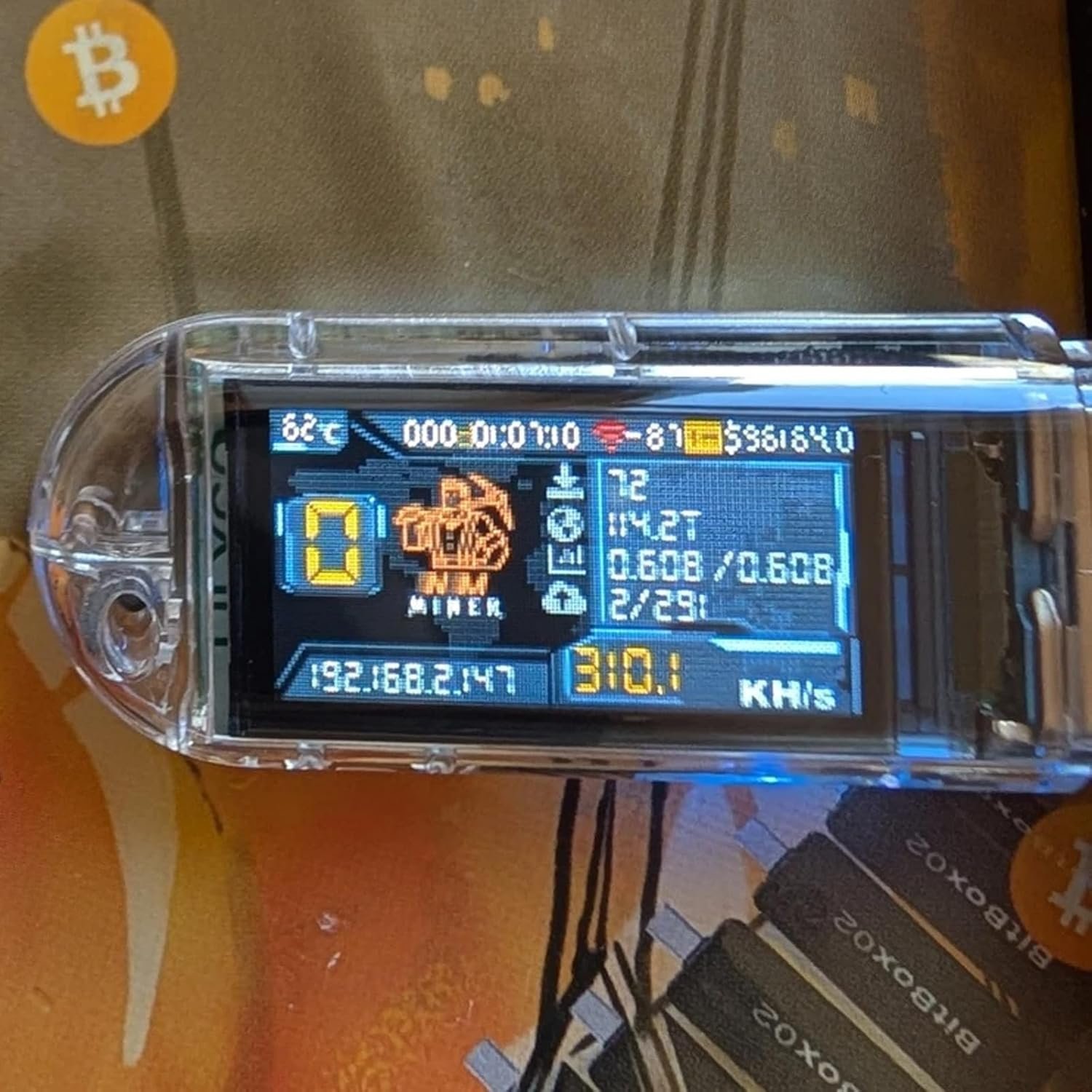 USB solo miner hashrate 300Kh/s; USB-A powered, compact and portable, easy to operate; Can be directly connected to computer/laptop/USB HUB/mobile power supply/mobile phone/USB charging socket